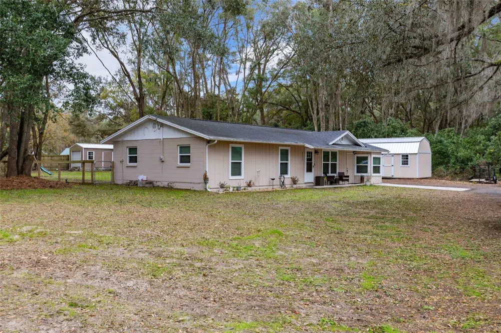 Amazing location on 1 acre with granddaddy oak trees! Welcome home to this adorable 3 bedroom plus bonus room, 1.5 bath home situated on the cusp of High Springs and Alachua. If you're looking for peace and quiet all within a convenient drive, then look no further! When you arrive you'll love the circle drive and beautiful oak trees lining the perimeter of the property. Step inside this cozy home to appreciate an open concept living area, an updated kitchen with stainless steel appliances, and a large utility room with extra storage space. To the left of the home, you'll find two guest bedrooms, a full bathroom, and the primary suite. On the opposite side of the home, is the converted 4th bedroom perfect for a home office, private guest bedroom, or whatever your heart desires. Just off the dining area, is a large covered and screened patio perfect for enjoying beautiful Florida weather year round and the tranquility of your private acre. Additional features include: fenced backyard for your furry friends, detached storage shed, and much more. This is a rare opportunity to own a little slice of heaven in this coveted part of High Springs. Call today to schedule your showing! *Buyer to verify all property details.*