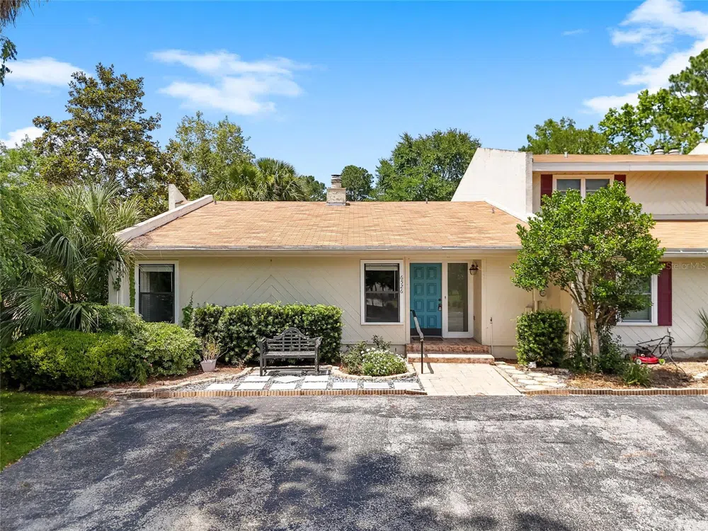 Step back through our time portal to an era when a move-in ready single-family home could be purchased in the low $100s/SF in a desirable golf-course community. This end unit was built to entertain & features a huge living room w/ vaulted ceilings, a hidden under counter blender & a wood burning fireplace. Updates include a new roof in 2022, newer double-paned windows, an updated master bathroom shower and fresh paint throughout. While everything is functional as it is, the home is priced to allow for updates as you see fit over time, and a comprehensive home warranty is provided for your peace of mind. Washer, dryer & all kitchen appliances are included. Enjoy the peaceful pond & golf course views from the large screened-in back porch. Flood insurance is not required! The HoA takes care of the lawn care, pest control, the gate attended, mail center & common areas, which include pickleball, a large community pool, clubhouse, restaurant, golf course, playground, sports field, tennis & basketball courts. Turkey Creek is conveniently located just 5 minutes to either NW Gainesville or all that the growing downtown Alachua has to offer, including hundreds of miles of hiking trails and many state parks. Come see all the potential this home has to offer today!